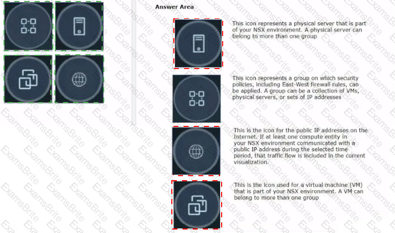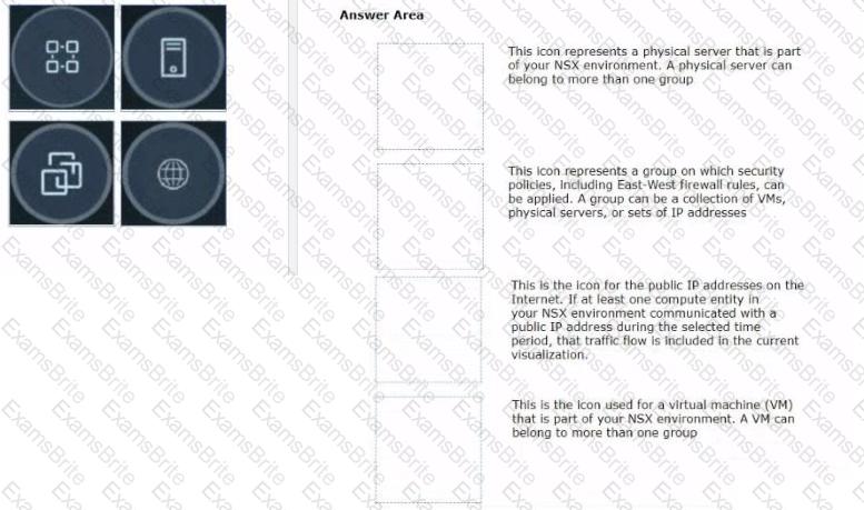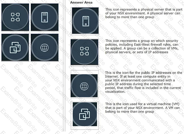 Drag and drop the NSX graphic element icons on the left found in an NSX Intelligence visualization graph to Its correct description on the right.