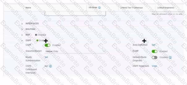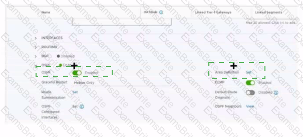 Which two items must be configured to enable OSPF for the Tler-0 Gateway in the Image? Mark your answers by clicking twice on the image.