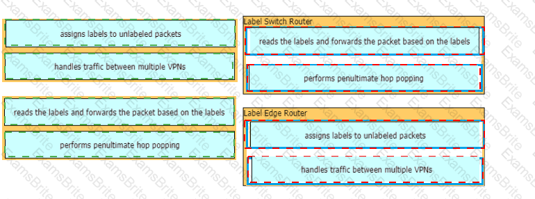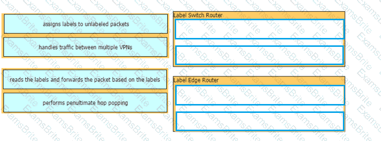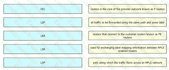 Drag and drop the descriptions from the left onto the corresponding MPLS components on the right.