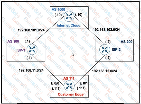 Refer to the exhibit. AS 111 mut not be used as a transit AS, but ISP-1 is getting ISP-2 routes from AS 111. Which configuration stops Customer AS from being used as a transit path on ISP-1?