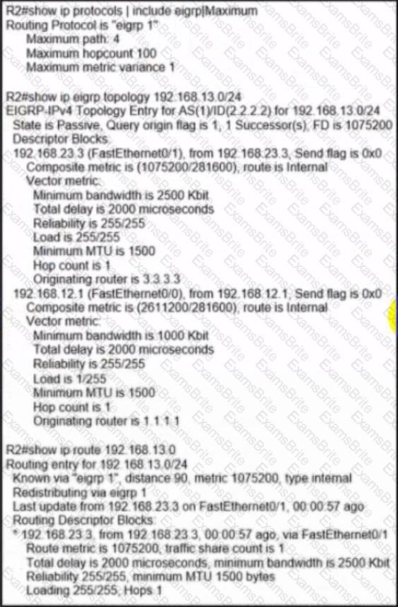Refer to the exhibit. R2 has two paths to reach 192.168.13.0/24. but traffic is sent only through R3. Which action allows traffic to use both paths?