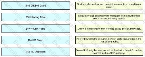 Drag and Drop the IPv6 First-Hop Security features from the left onto the definitions on the right.