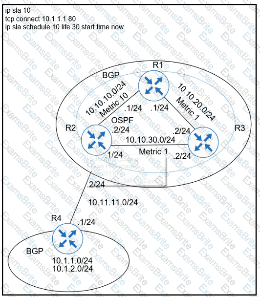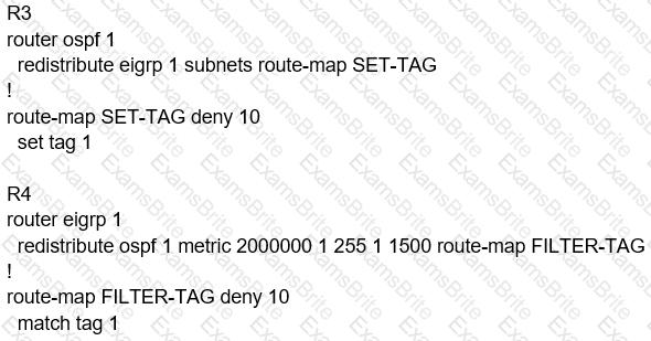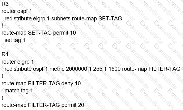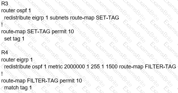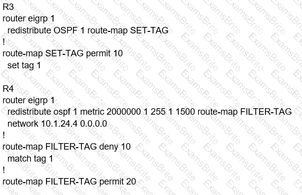 BGP and EIGRP are mutually redistributed on R3, and EIGRP and OSPF are mutually redistributed on R1. Users report packet loss and interruption of service to applications hosted onthe 10.1.1.0724 prefix. An engineer tested the link from R3 to R4 with no packet loss present but has noticed frequent routing changes on R3 when running the debug ip route command. Which action stabilizes the service?