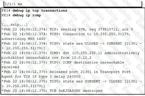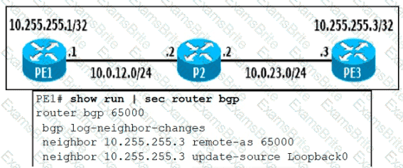 Refer to the exhibit. The administrator is troubleshooting a BGP peering between PE1 and PE3 that is unable to establish Which action resolves the issue?