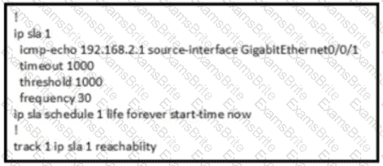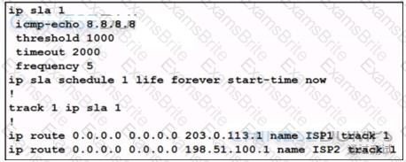 An administrator configures a router to stop using a particular default route if the DNS server 8.8.8.8 is not reachable through that route. However, this configuration did not work as desired and the default route still works even if the DNS server 8.8.8 8 is unreachable. Which two configuration changes resolve the issue? (Choose two.)