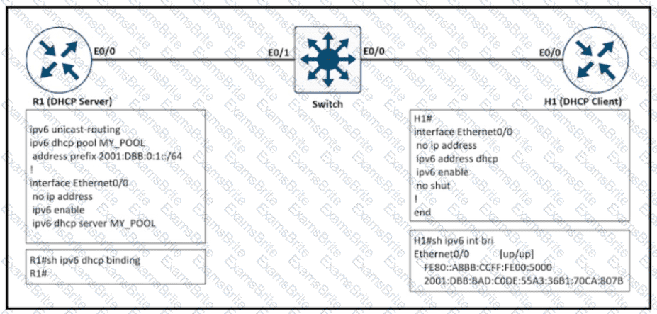 Refer to the exhibit. The client server but the show command does not show the IPv6 DHCP bindings on the server. Which action resolves the issue?