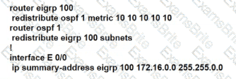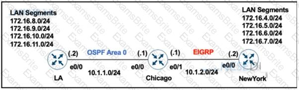 The network administrator configured the Chicago router to mutually redistribute the LA and NewYork routes with OSPF routes to be summarized as a single route in EIGRP using the longest summary mask: