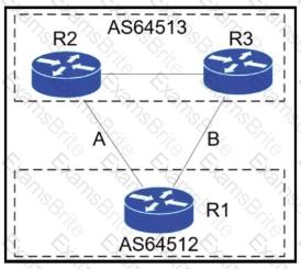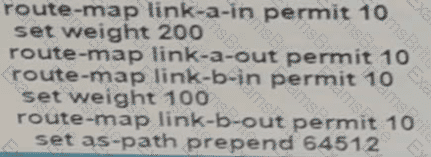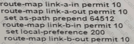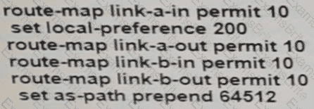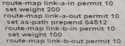 A network engineer for AS64512 must remove the inbound and outbound traffic from link A during maintenance without closing the BGP session so that there ............ a backup link over link A toward the ASN. Which BGP configuration on R1 accomplishes this goal?