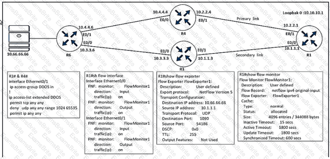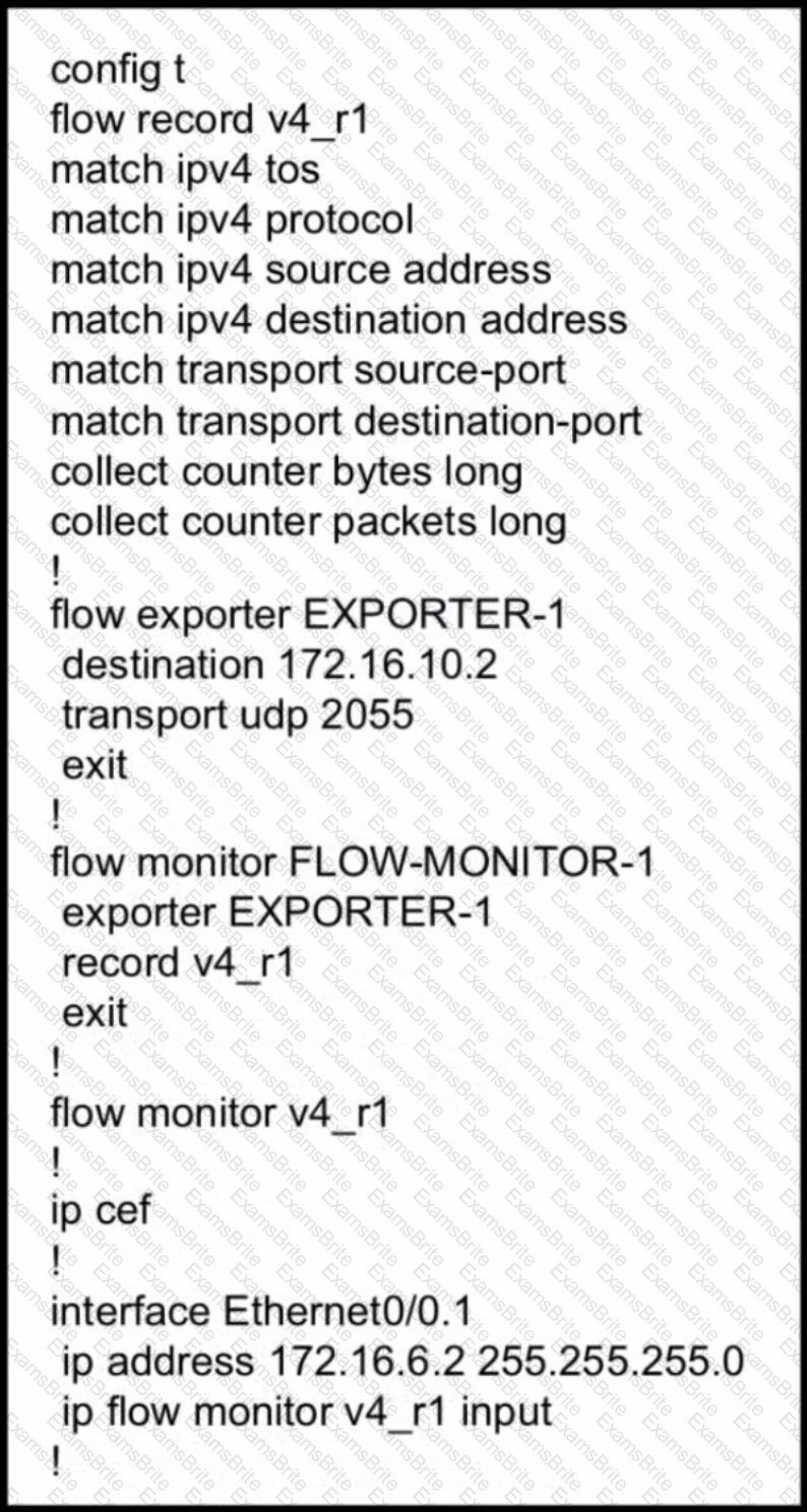Refer to the exhibit An engineer configured NetFlow but cannot receive the flows from R1 Which two configurations resolve the issue? (Choose two )