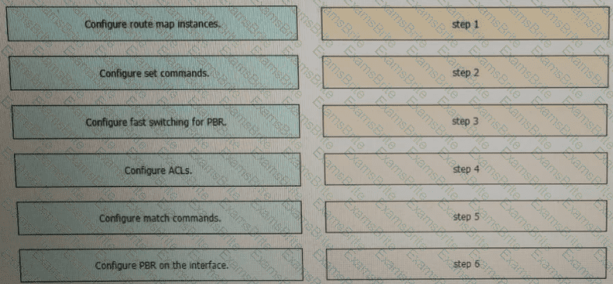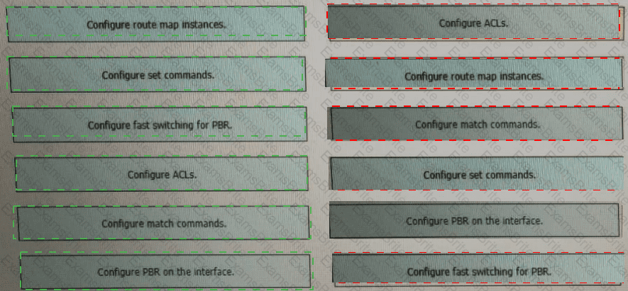 Drag and drop the actions from the left into the correct order on the right to configure a policy to avoid following packet forwarding based on the normal routing path.
