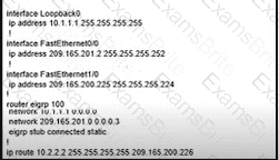 An engineer configured a leak-map command to summarize EIGRP routes and advertise specifically loopback 0 with an IP of 10.1.1.1.255.255.255.252 along with the summary route. After finishing configuration, the customer complained not receiving summary route with specific loopback address. Which two configurations will fix it? (Choose two.)