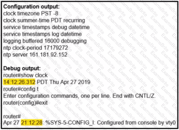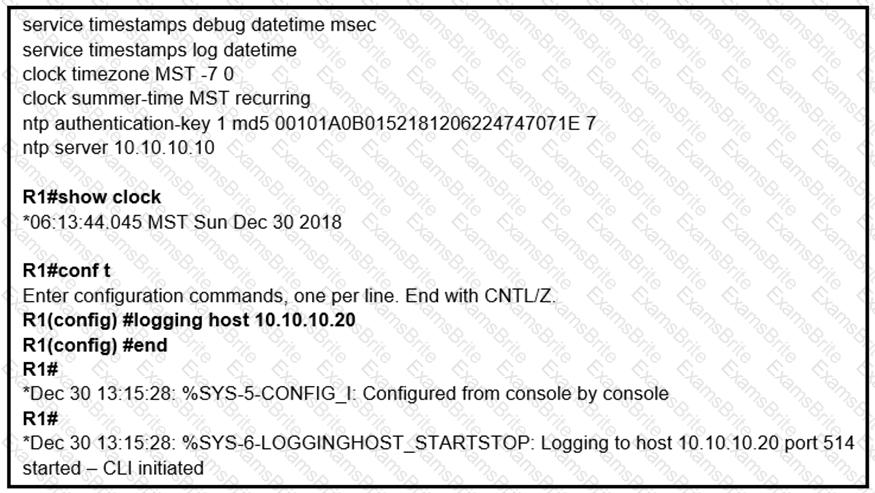 An administrator noticed that after a change was made on R1, the timestamps on the system logs did not match the clock. What is the reason for this error?