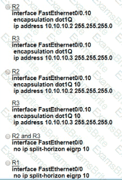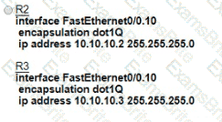 The neighbor relationship is not coming up Which two configurations bring the adjacency up? (Choose two)