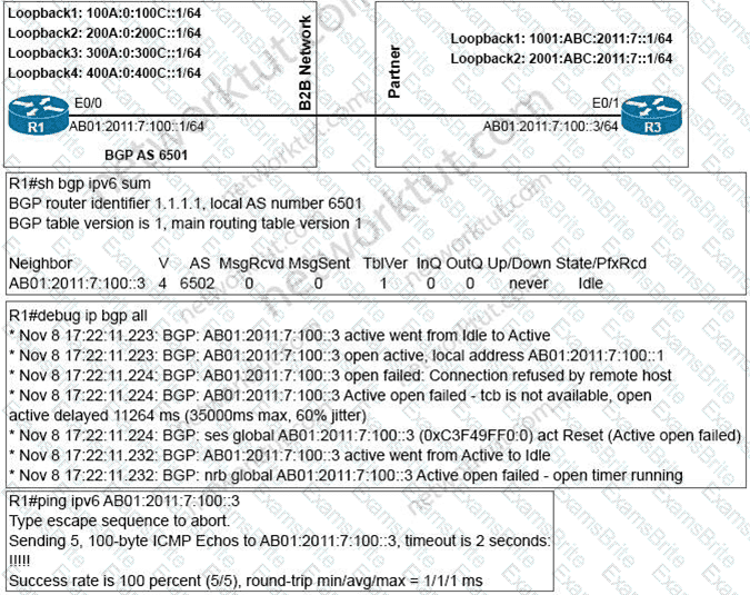 An engineer configured BGP between routers R1 and R3 The BOP peers cannot establish neighbor adjacency to be able to exchange routes. Which configuration resolves this issue?