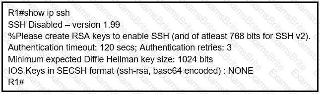 An engineer is trying to connect to a device with SSH but cannot connect. The engineer connects by using the console and finds the displayed output when troubleshooting. Which command must be used in configuration mode to enable SSH on the device?