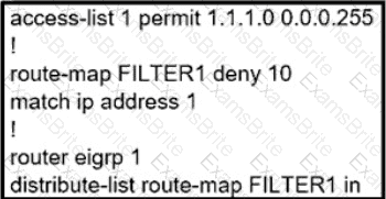 Refer to the exhibit. Which action restores the routes from neighbors while still filtering 1.1.1.0/24?