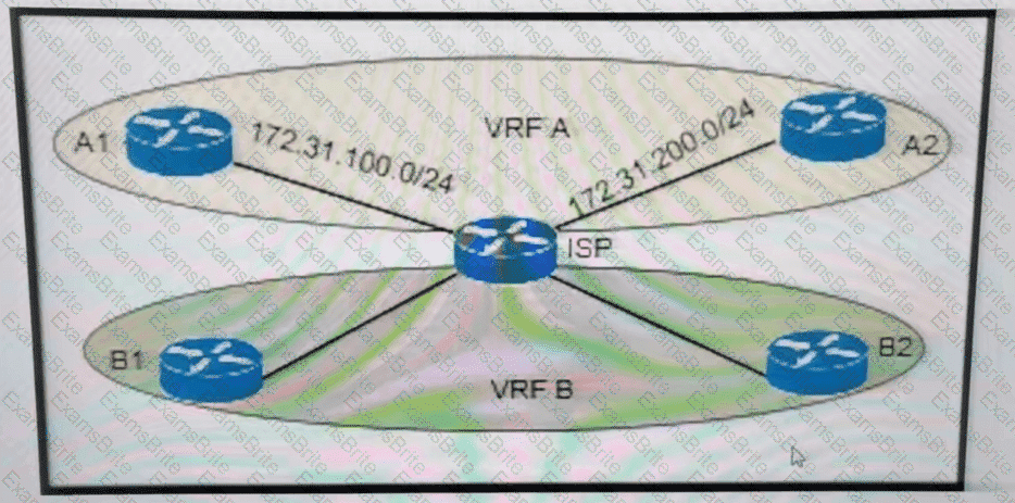 Refer to the exhibit. The ISP router is fully configured for customer A and customer B using the VRF-Lite feature. What is the minimum configuration required for customer A to communicate between routers A1 and A2?