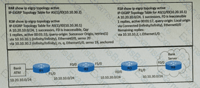 A bank ATM site has difficulty connecting with the bank server. A network engineer troubleshoots the issue and finds that R4 has no active route to the bank ATM site. Which action resolves the issue?