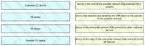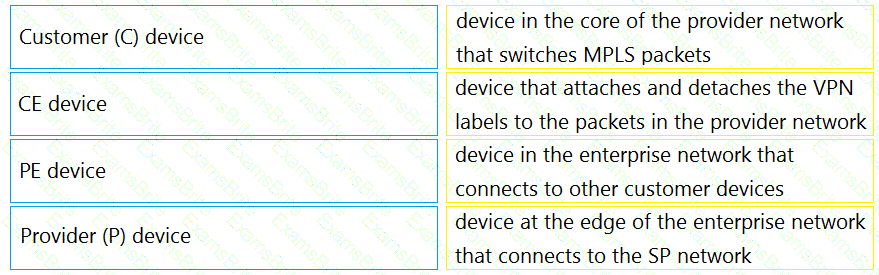 Drag and drop the MPLS VPN device types from me left onto the definitions on the right.
