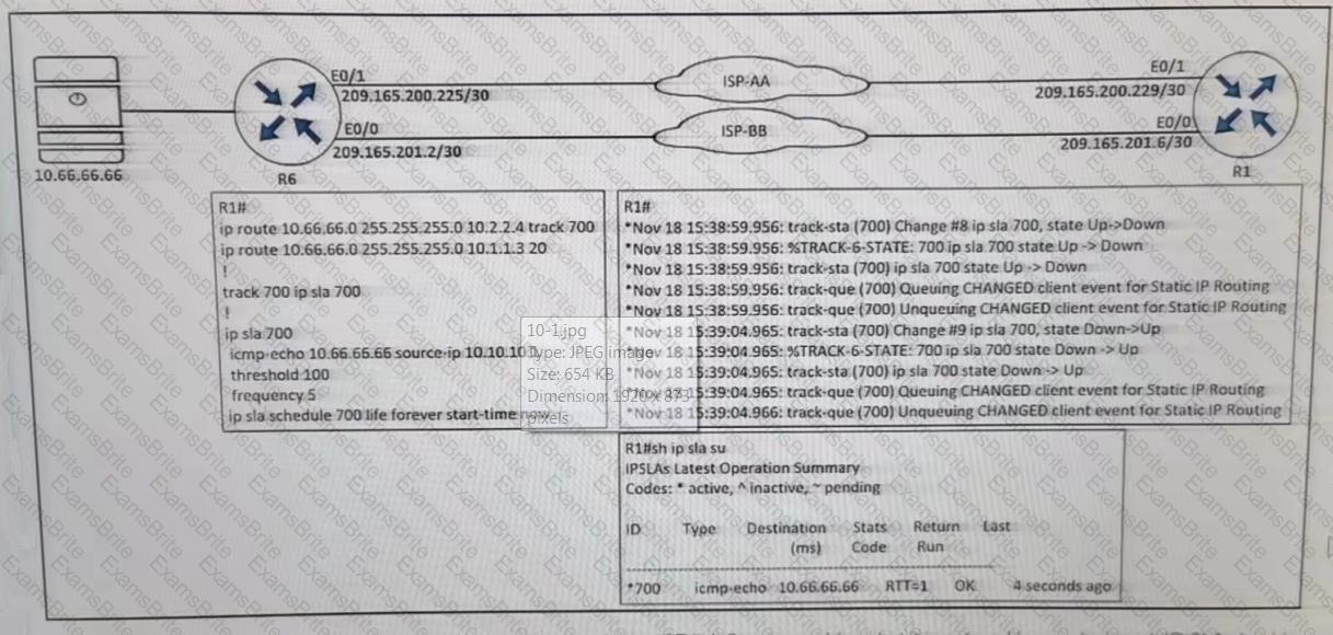 R1 is configured with IP SLA to check the availability of the server behind R6 but it kept failing. Which configuration resolves the issue?
