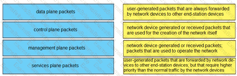 Drag and drop the packet types from the left onto the correct descriptions on the right.