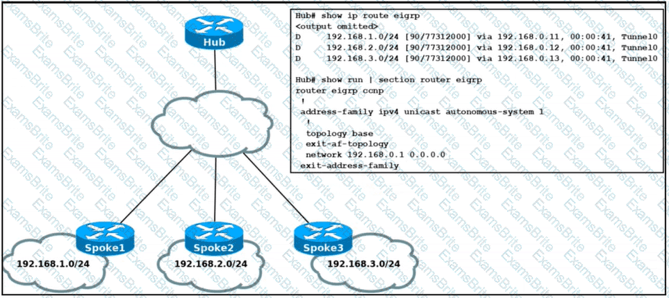 Refer to the exhibit. The traffic from spoke to hub is dropping. The operations team observes: