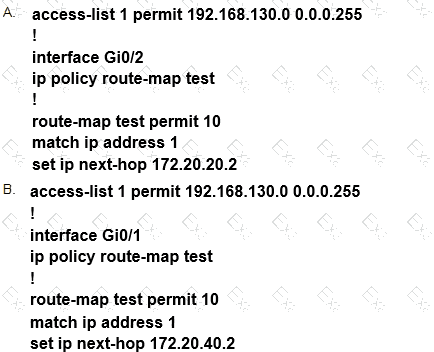 Which configuration configures a policy on R1 to forward any traffic that is sourced from