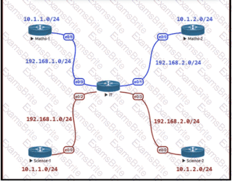 The Math and Science departments connect through the corporate. IT router but users in the Math department must not be able to reach the Science department and vice versa Which configuration accomplishes this task?