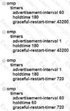 A network administrator is tasked to make sure that an OMP peer session is closed after missing three consecutive keepalive messages in 3 minutes. Additionally, route updates must be sent every minute. If a WAN Edge router becomes unavailable, the peer must use last known information to forward packets for 12 hours. Which set of configuration commands accomplishes this task?