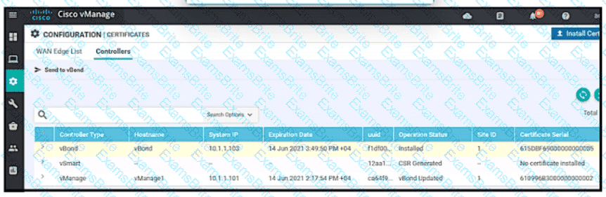 An engineer must apply the configuration for certificate installation to vBond Orchestrator and vSmart Controller. Which configuration accomplishes this task?