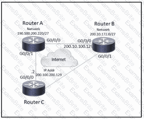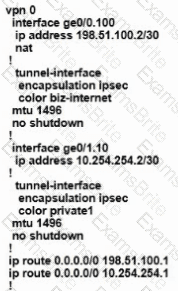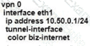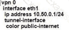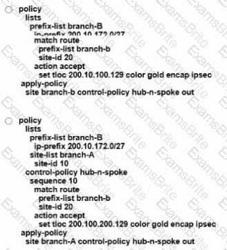 Refer to the exhibit. An engineer configures a hub-and-spoke SD-WAN topology with the requirement that traffic from router A branch to router B branch is guaranteed to flow through the network hub, router C. Which configuration meets the requirement for router A?