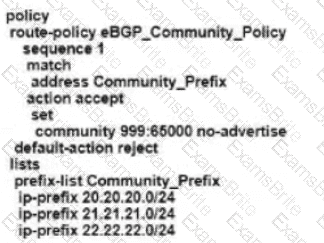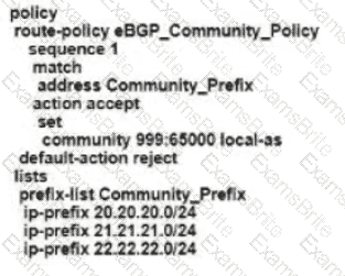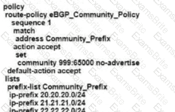 Refer to the exhibit The engineering must assign tags to 3 Of its 74 server networks as soon as they are advertised to peers These server network must not be advertised AS which configuration fulfil the requirement?