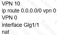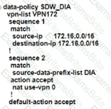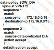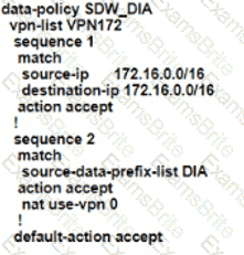 An engineer is configuring the branch office with a 172.16.0.0/16 subnet to use DIA for Internet traffic. All other traffic must flow to the central site or branches using the MPLS circuit Which configuration meets the requirement?