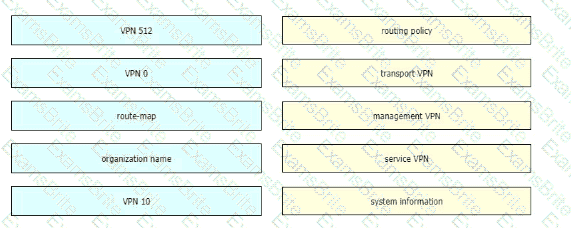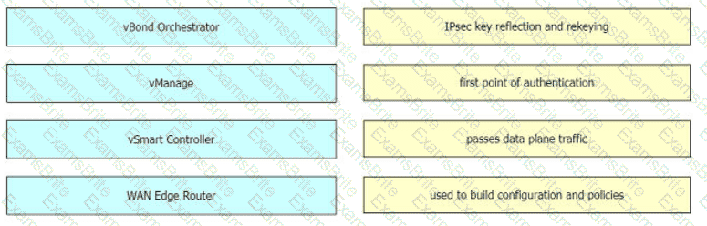 Drag and drop the Cisco SD-WAN components from the left onto their functions on the right.
