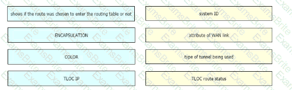 Drag and drop the route verification output from show omp tlocs from the left onto the correct explanations on the right.