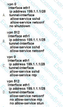 Refer to the exhibit. An engineer is enabling command line access via MPLS for in-band management. Which command completes the partial SD-WAN interface configuration with the highest degree of security?
