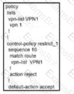 A customer has 1 to 100 service VPNs and wants to restrict outbound updates for VPN1 Which control policy configuration restricts these updates?