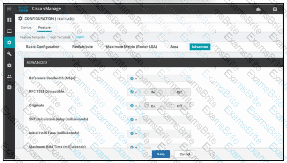 Refer to the exhibit. A network administrator is configuring OSPF advanced configuration parameters from a template using the vManager GUI for a branch WAN Edge router to calculate the cost of summary routes to an ASBR. Which action achieves this configuration?
