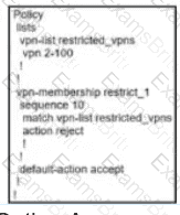 An engineer is modifying an existing data policy for VPN 115 to meet these additional requirements: