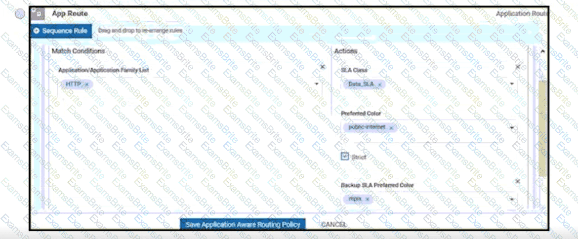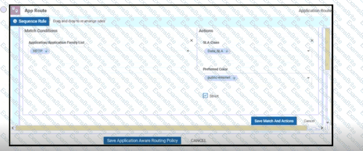 An engineer must improve video quality by limiting HTTP traffic to the Internet without any failover. Which configuration in vManage achieves this goal?