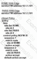 An engineer configured a data policy called ROME-POLICY. Which configuration allows traffic flow from the Rome internal network toward other sites?