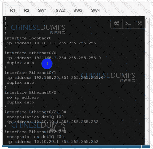 Refer to the exhibit. Which configuration extends the INET interface on R1 to be used by R2 for control and data connections?