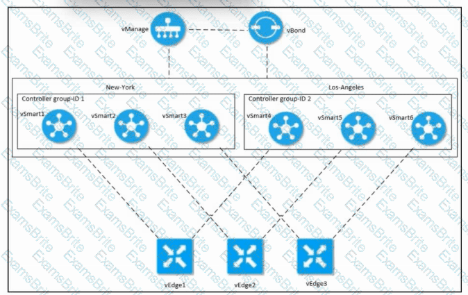 Refer to the exhibit. An engineer must configure redundancy by deploying three Cisco vSmart Controllers in each data center. Which two actions must be taken to configure controllers vSmart1 and vSmart4? (Choose two.)