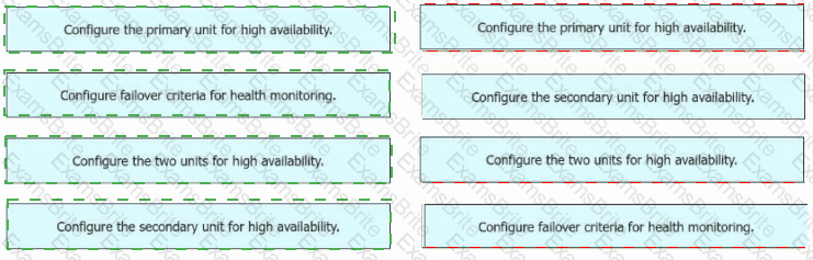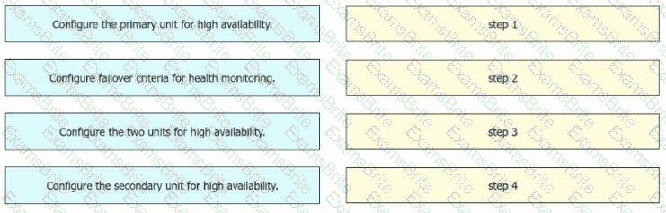 An engineer must configure high availability on two Cisco Secure Firewall Threat Defense appliances. Drag and drop the configuration steps from the left into the sequence on the right.
