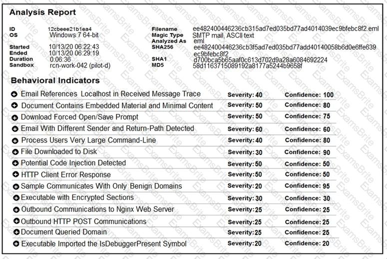 A security analyst receives an escalation regarding an unidentified connection on the Accounting A1 server within a monitored zone. The analyst pulls the logs and discovers that a Powershell process and a WMI tool process were started on the server after the connection was established and that a PE format file was created in the system directory. What is the next step the analyst should take?