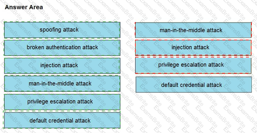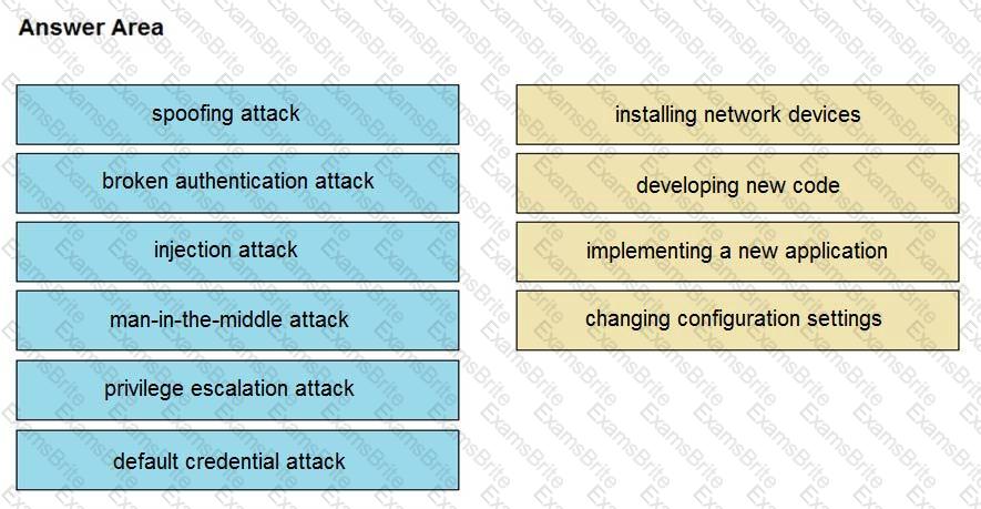 Drag and drop the threat from the left onto the scenario that introduces the threat on the right. Not all options are used.
