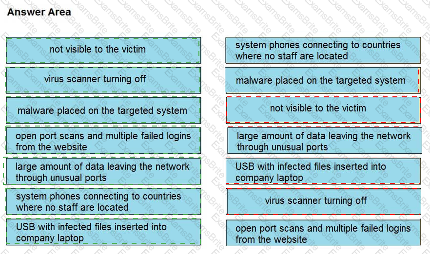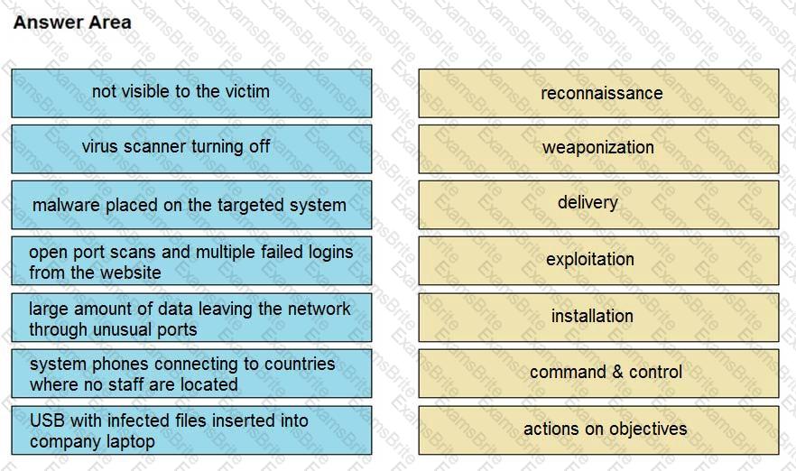 Drag and drop the type of attacks from the left onto the cyber kill chain stages at which the attacks are seen on the right.