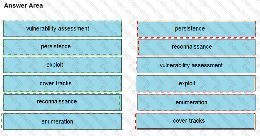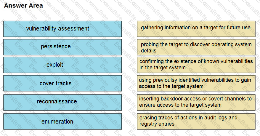 Drag and drop the phases to evaluate the security posture of an asset from the left onto the activity that happens during the phases on the right.