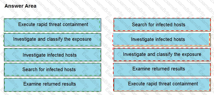 The Cisco Secure Network Analytics (Stealthwatch) console alerted with “New Malware Server Discovered” and the IOC indicates communication from an end-user desktop to a Zeus C&C Server. Drag and drop the actions that the analyst should take from the left into the order on the right to investigate and remediate this IOC.