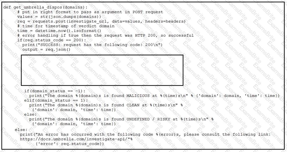 Which code snippet will parse the response to identify the status of the domain as malicious, clean or undefined?
